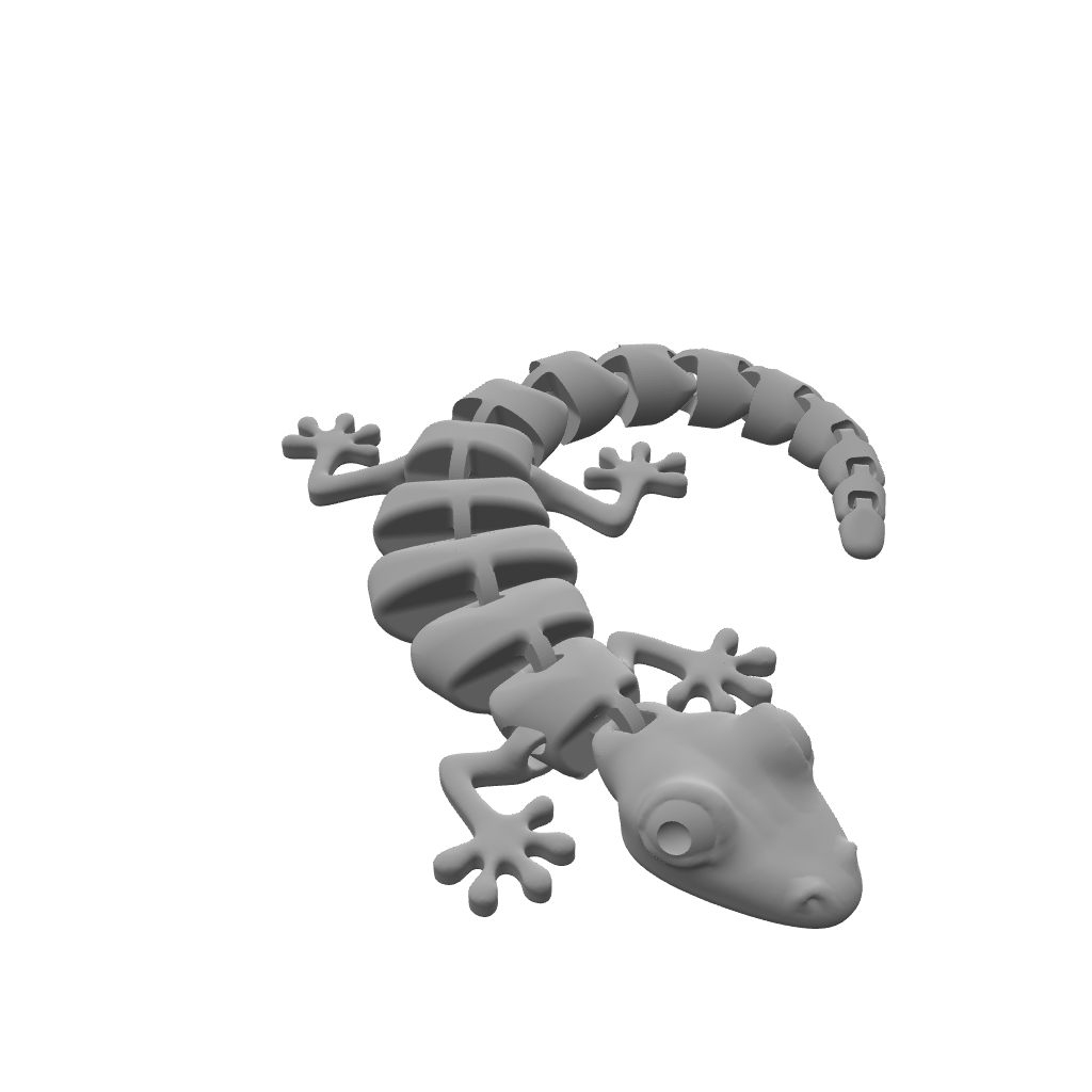 The articulated lizard prints cleanly and scales reliably, making it suitable for small desk toys, flexible display pieces, educational animal models, and physical products for sale. The curled pose provides compact printing while maintaining full articulation.