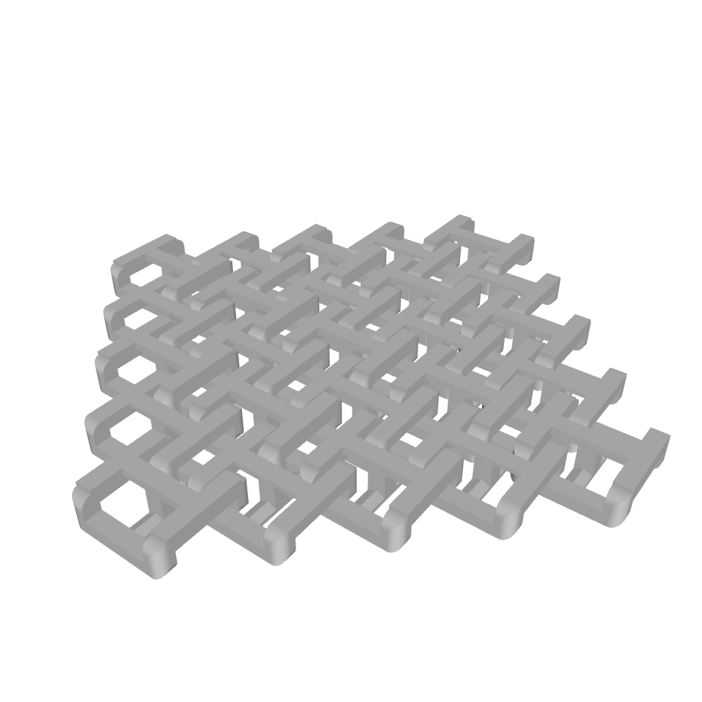 The model prints as a single piece with fully articulated links, requiring no assembly and no supports. Once printed, the structure behaves like a flexible fabric or chainmail sheet, capable of bending, draping, and moving freely.