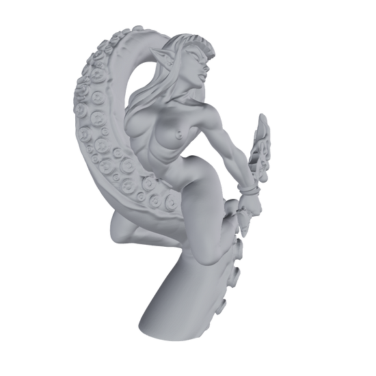 fantasy siren figurine, tentacle statue 3D print, dark alfar model, sea sorceress resin figure, fantasy collectible printable, character art STL, resin miniature fantasy, deep sea mermaid statue