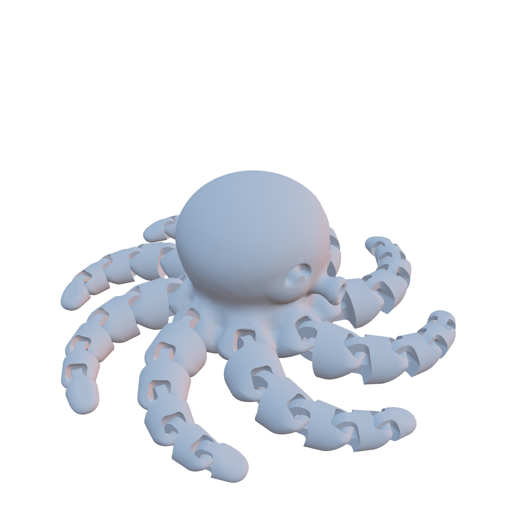 Articulated flexi octopus designed with segmented tentacles for smooth flex and motion once printed. Prints as a single-piece model with no assembly, making it ideal as a desk fidget, toy-style collectible, or ocean-themed hobby print.