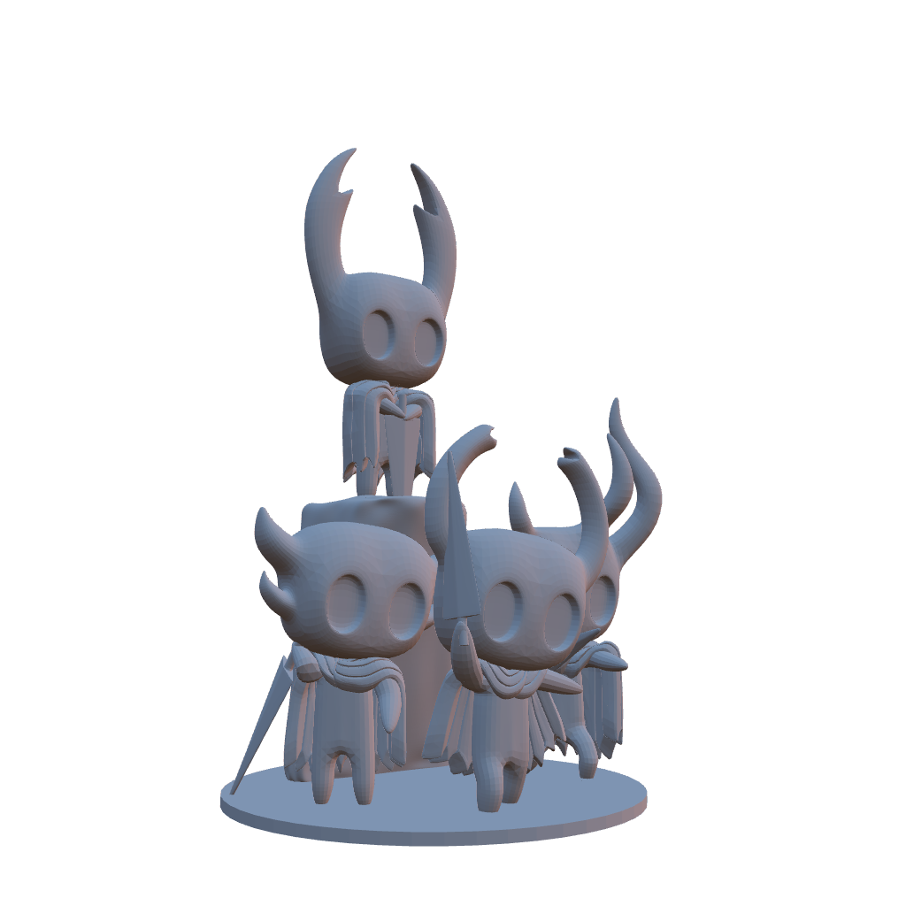 This fan-inspired Hollow Knight Siblings Diorama features multiple chibi Knights arranged on a stacked display base, capturing the iconic atmosphere of the game’s world. Designed as a unified statue, it prints as a single-piece display with great silhouette and charm.
