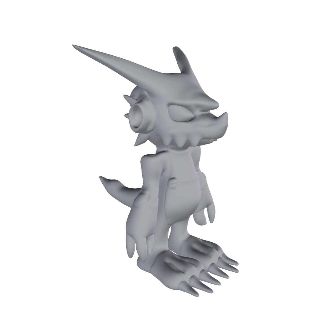 This stylized Shoutmon-inspired monster figure features exaggerated claws, angular facial armor, and a clean chibi-combat stance. Designed for collectors, painters, and fans of monster-battle universes, the model prints cleanly across resin and FDM with impressive silhouette appeal.