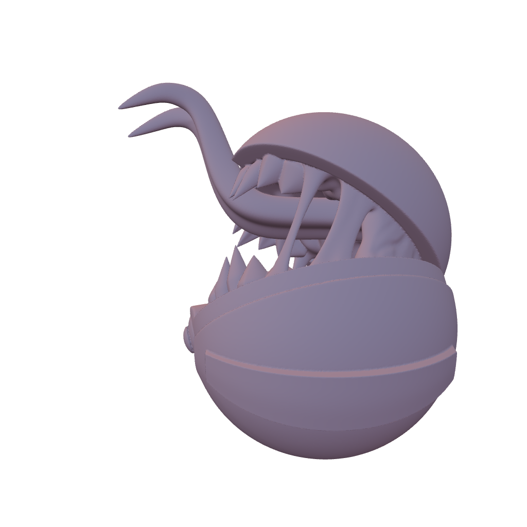 The sculpt includes exaggerated biological shapes envisioned for high visual interest and smooth printing performance. No articulated or moving parts — the sphere stays in a fixed “open bite” pose.